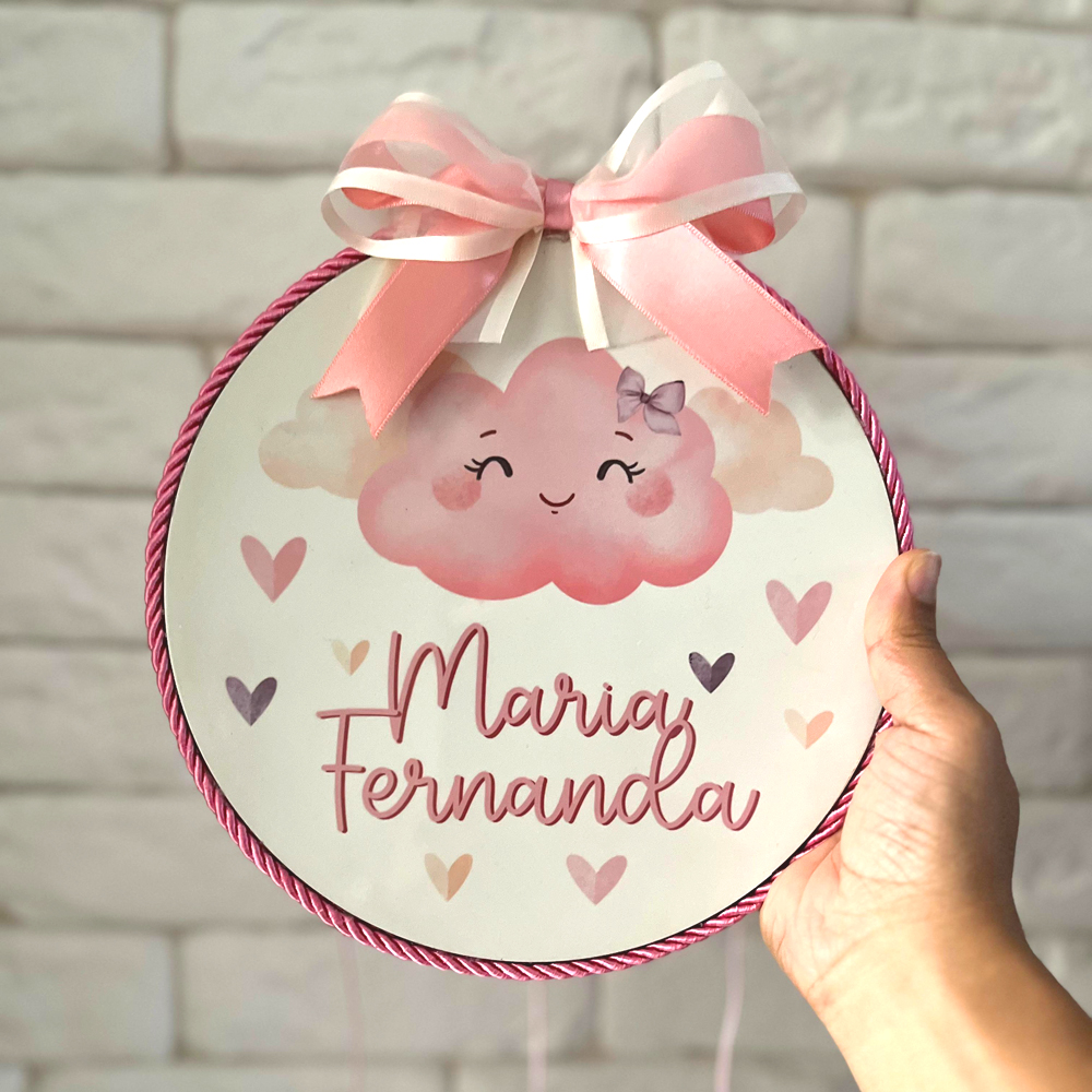 Produzido de forma artesanal e com muito carinho, é uma linda peça personalizável exclusiva da Yuxie perfeita para comemorar a chegada do bebê e decorar a porta do quartinho.